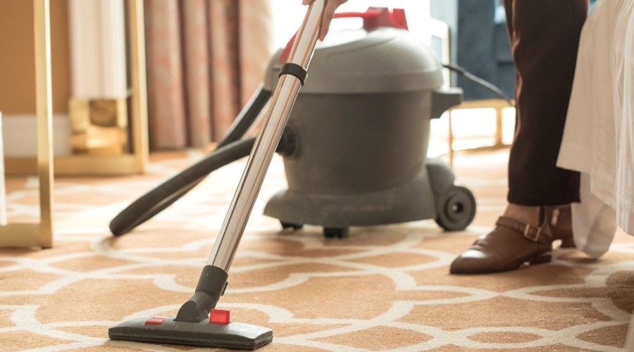 用吸塵器全面吸塵,稀釋清潔劑,也可注入水箱。在地毯上全面噴灑清潔劑,作用10-15分鐘后,污漬脫離纖維,用洗地機(jī)抽洗,操作向后行走而使每操作行有一部分重疊,最少經(jīng)過(guò)兩次抽洗,在清洗地毯的同時(shí),用吸水機(jī)吸凈已洗完的地毯,讓地毯完全干透,為加快地毯干透,可開(kāi)動(dòng)地毯吹干機(jī)。